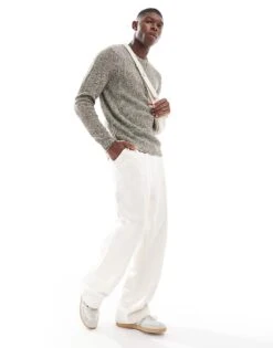Jack & Jones Oversized Chunky Jumper In Mocha Mixed Yarn For Men Moonbeam Detail:twis