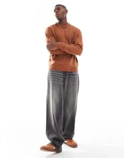Jack & Jones Oversized Chunky Rib Crew Neck Jumper In Burnt Orange For Men Mocha Bisque